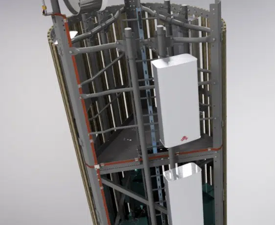 L’innovation repose sur une structure treillis métallique enveloppée d’un bardage en bois vertical, avec ou sans radôme. Ce choix permet de réduire de moitié le bilan carbone tout en offrant de nombreux avantages :